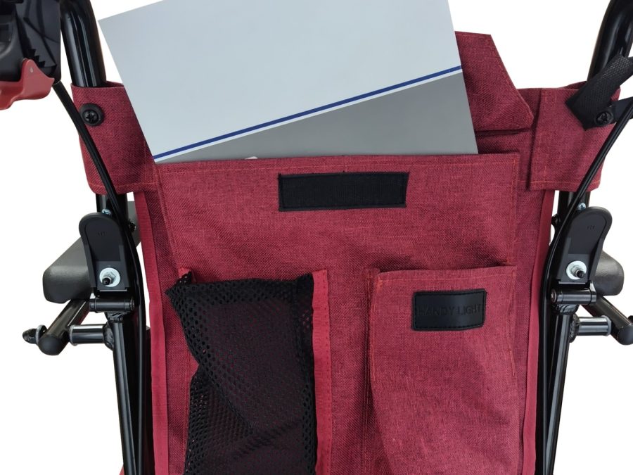 背面の大型ポケットにはA4サイズの雑誌やカルテが入ります。 手前にはペットボトルや折り畳み傘を入れられるメッシュポケット付き。