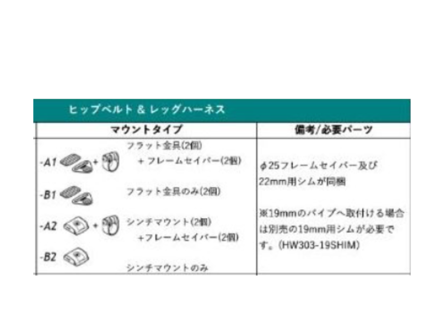 LBヒップベルト品番・価格リスト